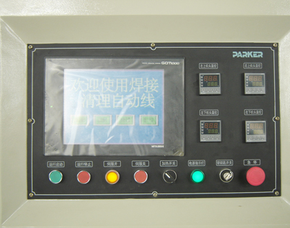 由臥式數(shù)控四角焊接機、數(shù)控自動輸送系統(tǒng)、數(shù)控清角機組成,塑窗焊接與清角可連續(xù)。生產(chǎn)線由一套控制系統(tǒng)實現(xiàn)對3個伺服電機進行一體化控制,數(shù)控系統(tǒng)采用的是日本三菱驅(qū)動系統(tǒng)和10.4寸彩色觸摸式控制屏。系統(tǒng)具有遠程通訊接口,排除系統(tǒng)故障。清角機采用的是3軸伺服電機驅(qū)動系統(tǒng),所設(shè)的刀具可以對焊角的全方位進行清理。