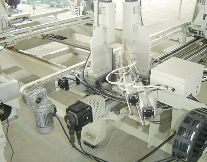 由臥式數(shù)控四角焊接機、數(shù)控自動輸送系統(tǒng)、數(shù)控清角機組成,塑窗焊接與清角可連續(xù)。生產(chǎn)線由一套控制系統(tǒng)實現(xiàn)對3個伺服電機進行一體化控制,數(shù)控系統(tǒng)采用的是日本三菱驅(qū)動系統(tǒng)和10 4寸彩色觸摸式控制屏。